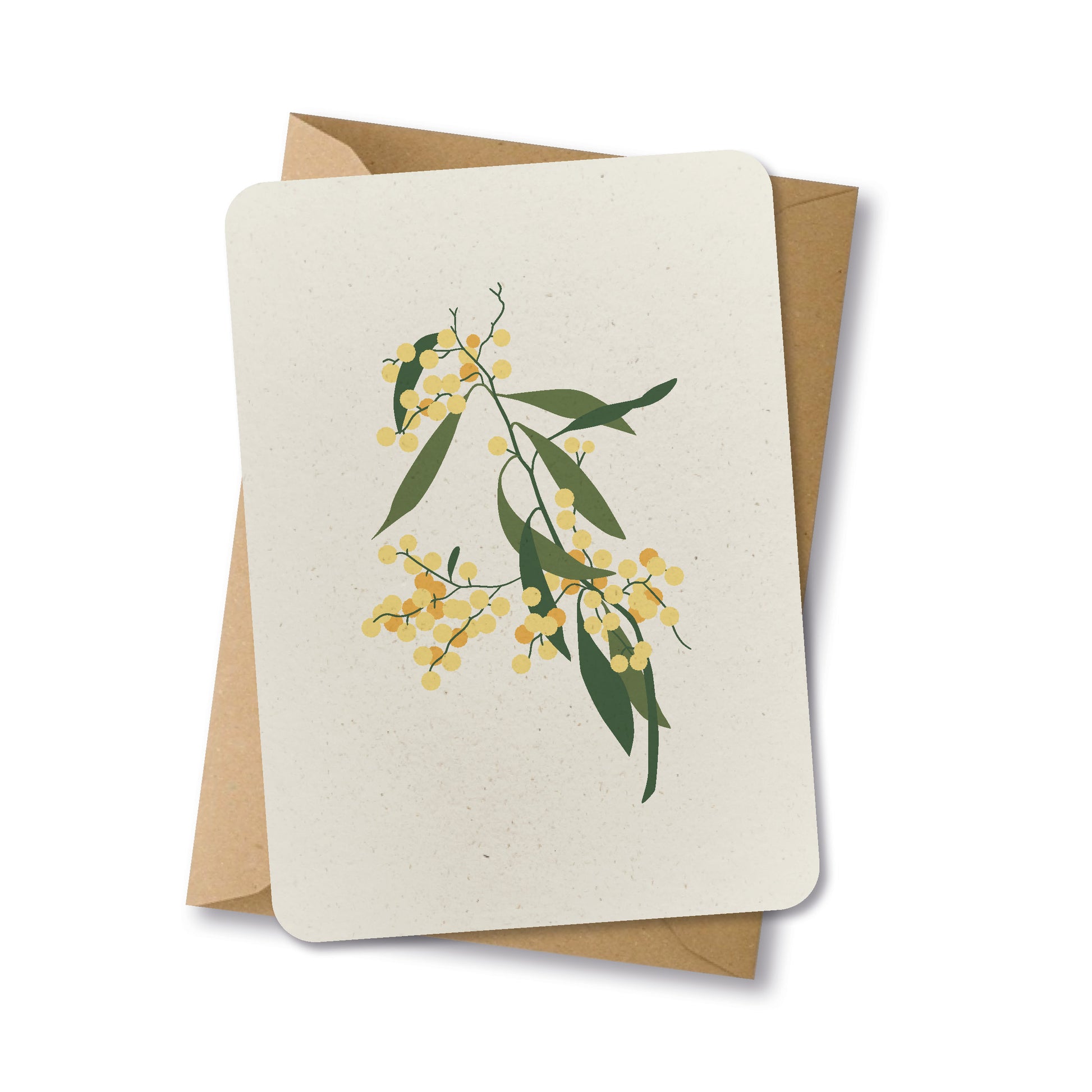 Deze ansichtkaart is gedrukt op ecologisch duurzaam Paperwise papier, met een tak met gele bloemetjes en groene blaadjes. De ronde hoeken geven de kaart een exclusieve uitstraling. De achterkant is blanco, perfect om een persoonlijke boodschap te schrijven. Inclusief een gerecycled kraft papier envelop.